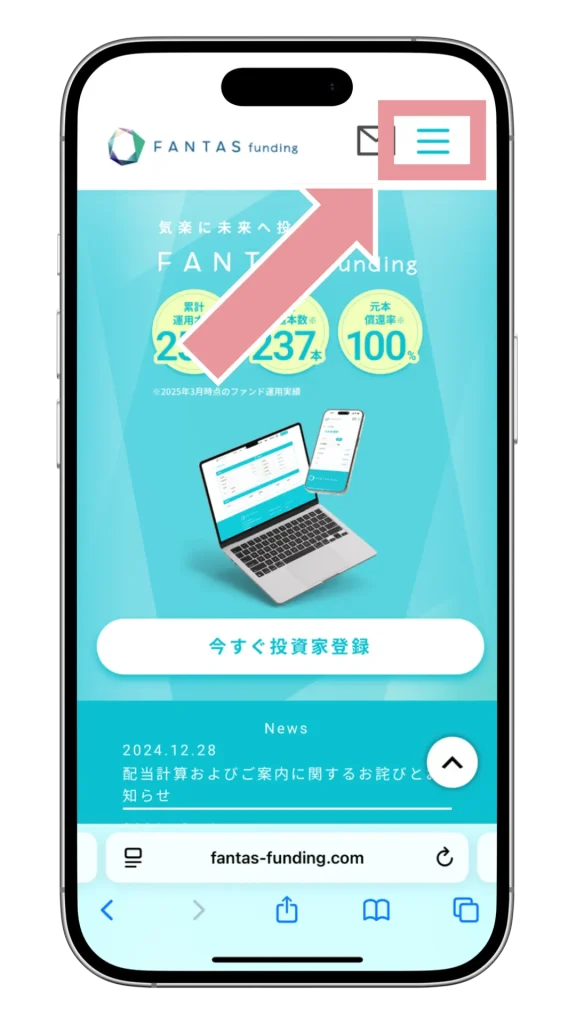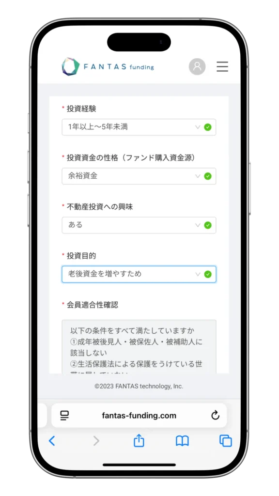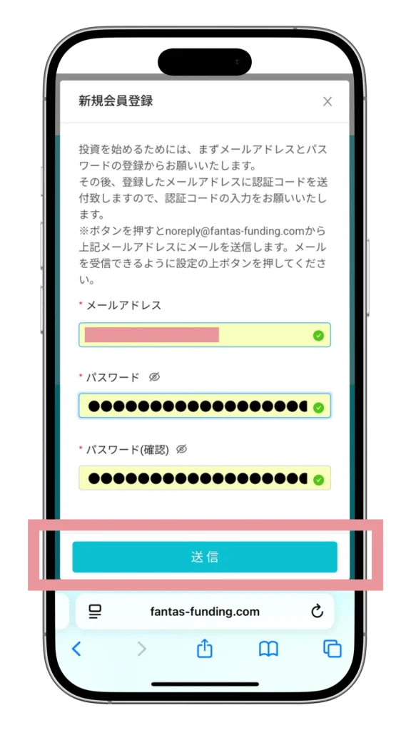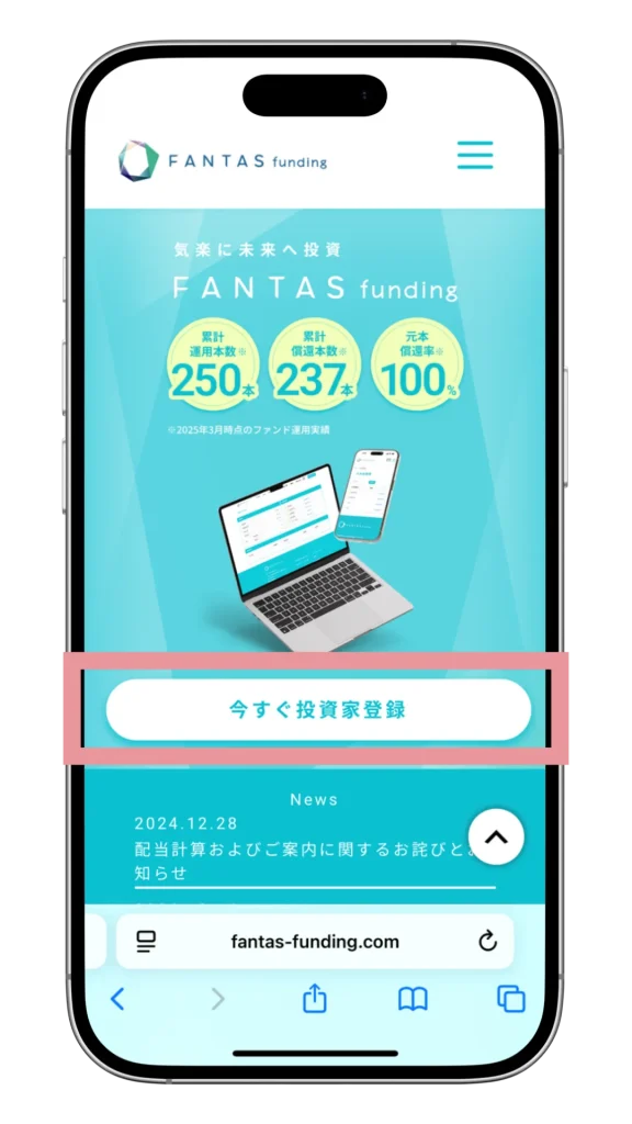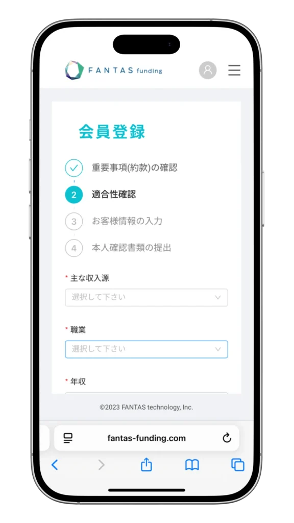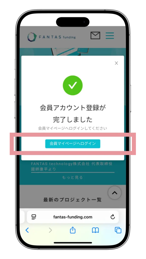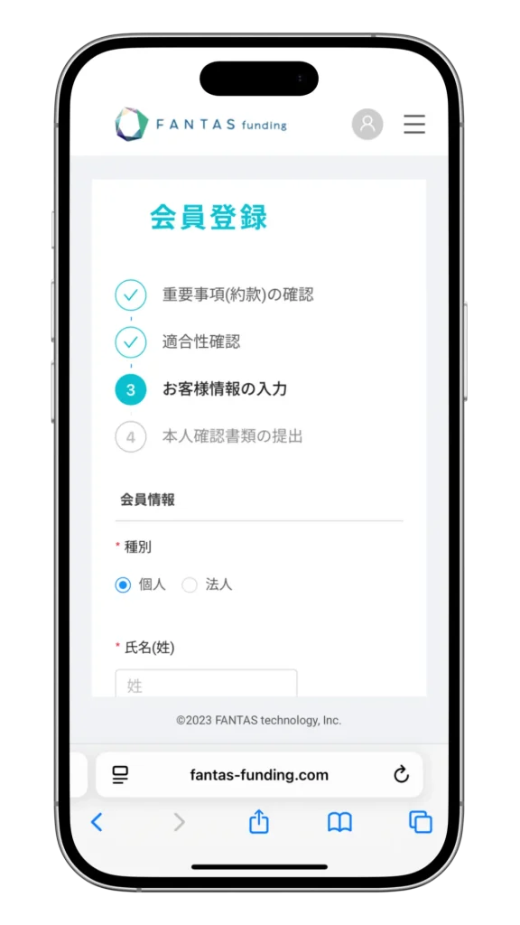 まずは、FANTASファンディングに無料で会員登録をしましょう。