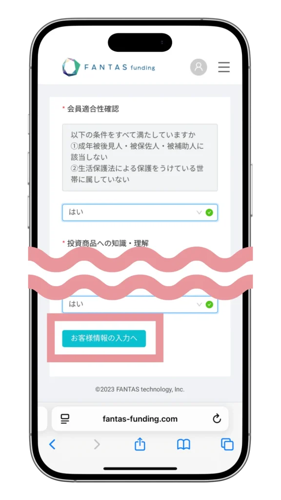 「今すぐ投資家登録」をタップする
