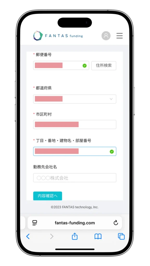 入力が完了したら、確認画面で回答内容を確認して次に進みましょう。