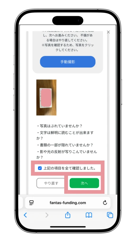 案内に沿って、マイナンバーカードを撮影して次に進みます。