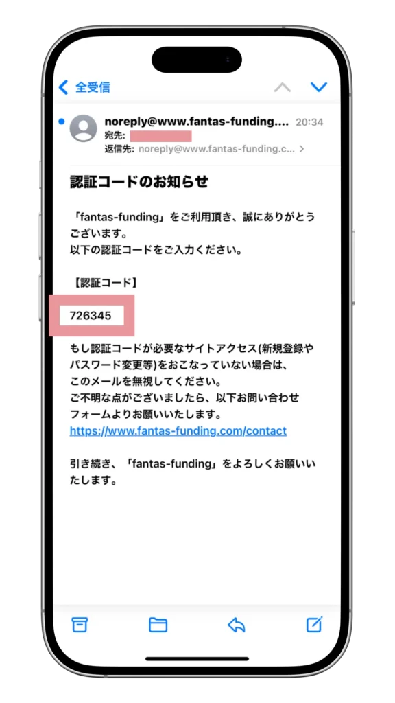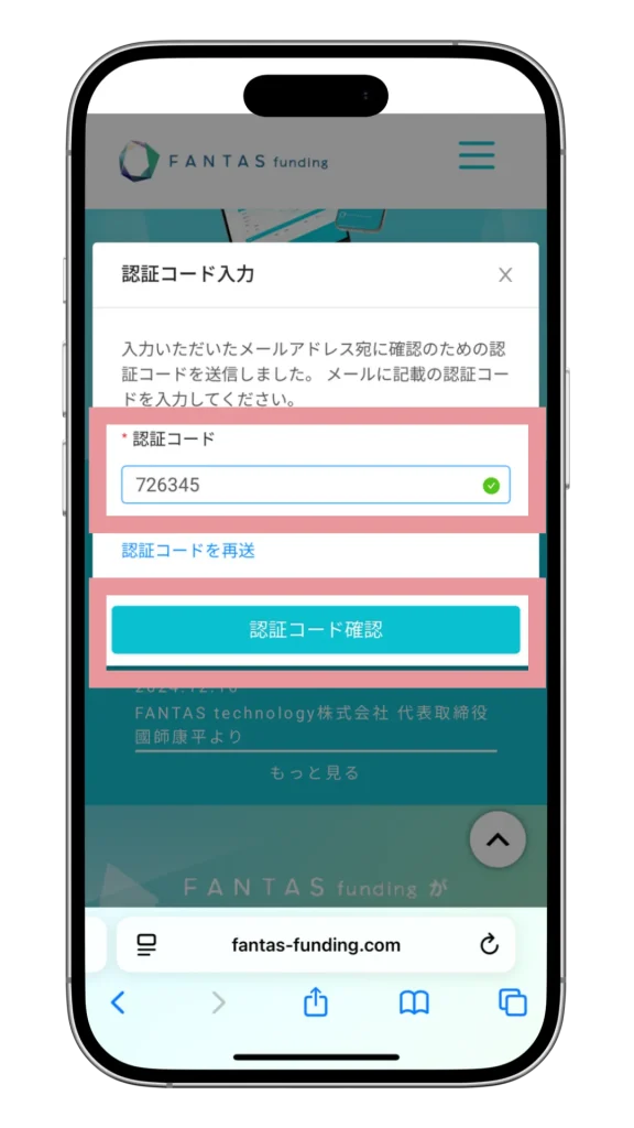認証コードを入力してアカウント登録を完了する
