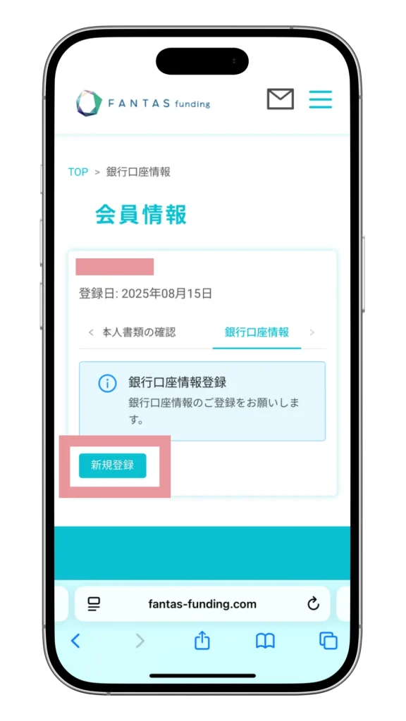 「新規登録」をタップして、口座情報を入力してください。