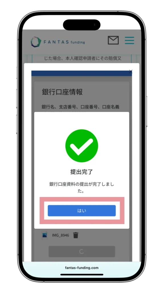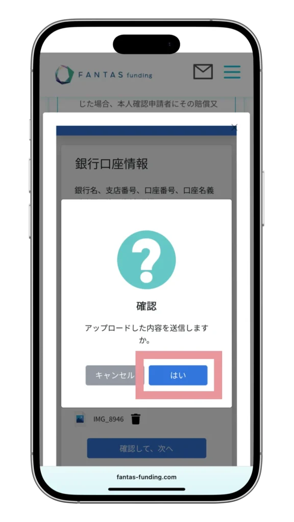 アップロード完了後、「はい」を2回タップで申請完了です。