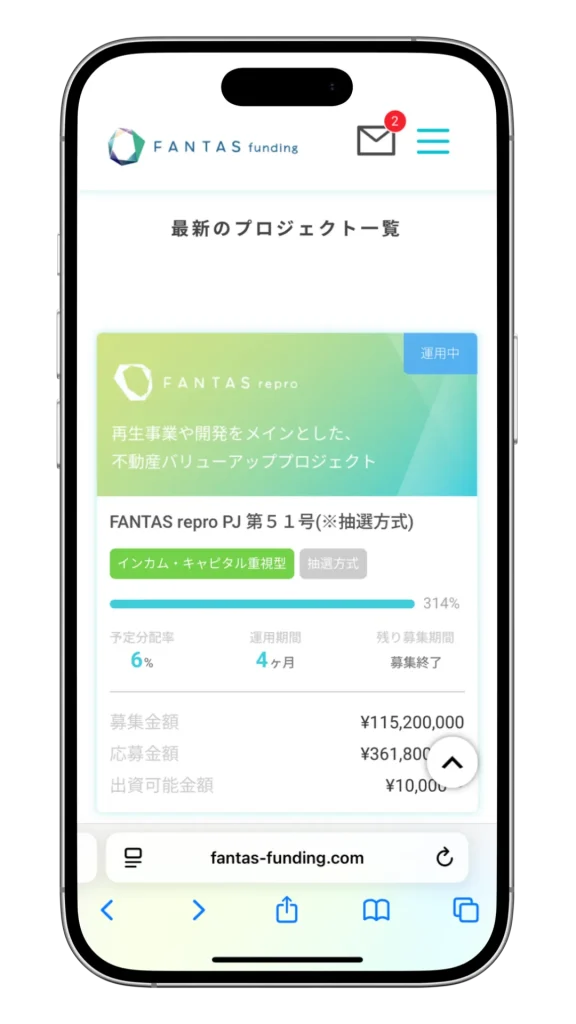 スクロールすると詳細が見られるので、投資するか判断するためにチェックしましょう。