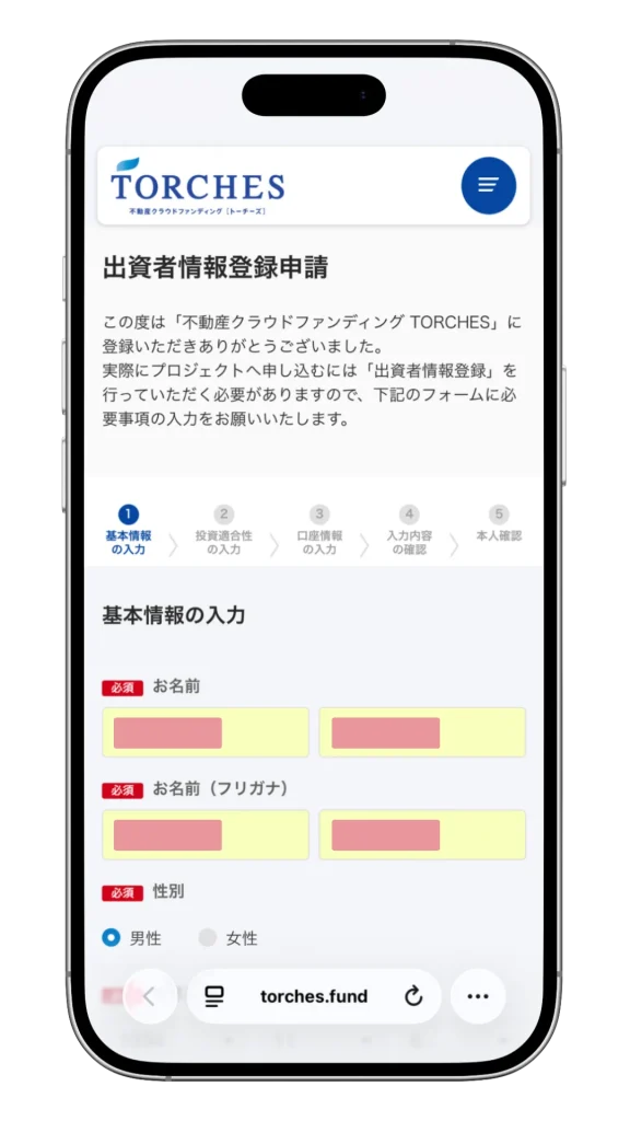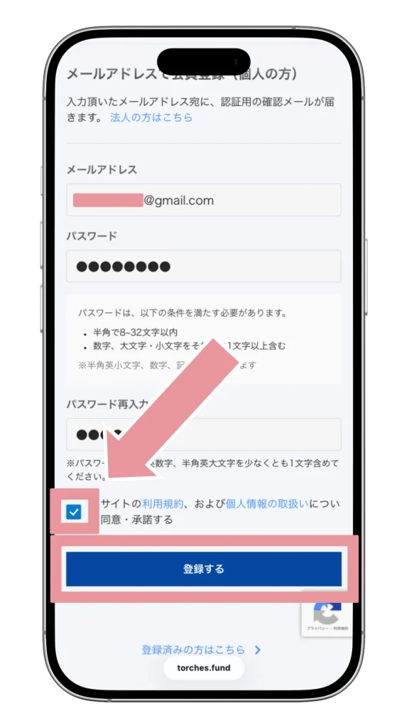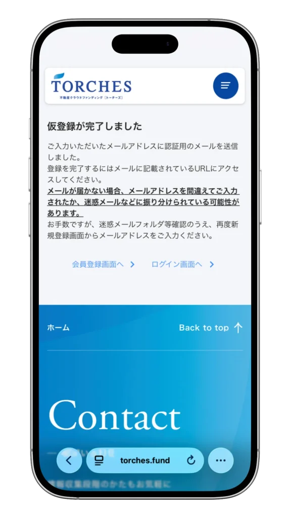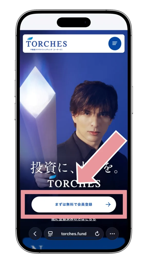 まずはTORCHESの公式ページから無料の会員登録をしましょう。