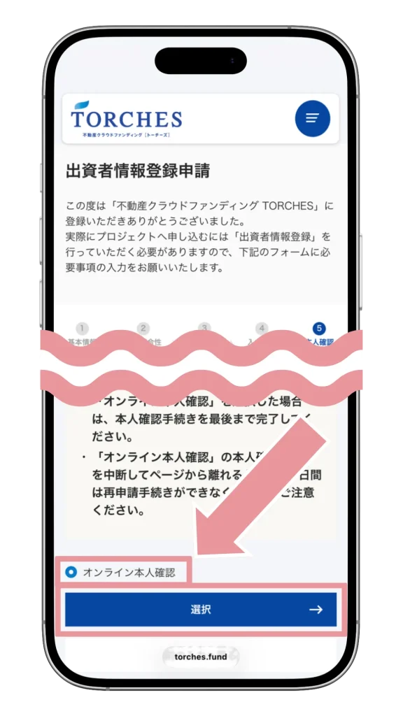 郵送でも本人確認できますが、オンラインの方が審査が早いので「オンライン本人確認」を選択しましょう。