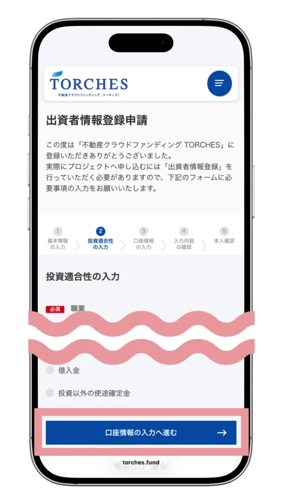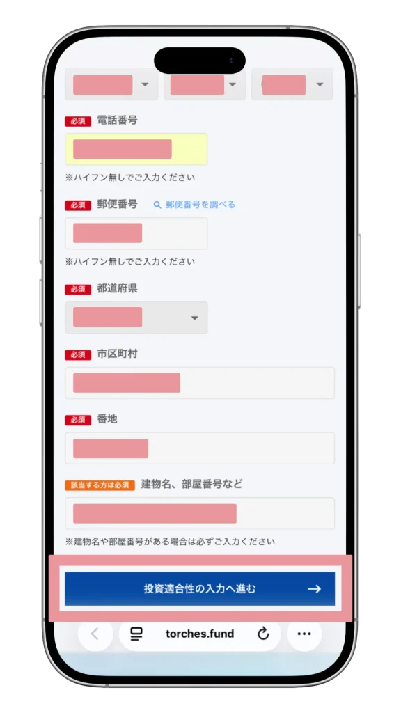 続いて、職業や収入などの「投資適合性」を入力してください。